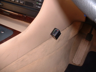 Eventually we decided to fit it in the upper footwell to the driver's left. It is a good position, easy to reach but not stuck in your face. This is important on long night journeys. The switch is seen here in the centre of the picture.