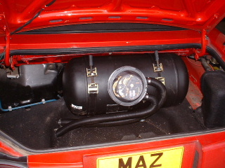 | We fitted a 30 litre cylinder tank in the tiny boot space. There is some space left. | |