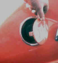 To fill up, the combined filler / flap assembly is turned with friction on the palm of the hand, and there it is...( you don't even have to bend down!)