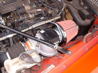 | The Backfire limitation valve is seen here fitted to the left of the airflow meter. The Exclusion Device is seen fitted on the right of the airflow meter. We do not advise conversion without these! |
