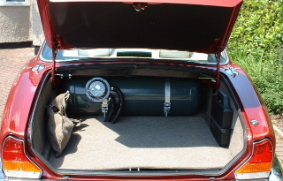| For very long range (or as an alternative) the 70 litre spare wheel (Toroidal) tank can be added. It is more expensive than the cylinder. If chosen as an alternative, remember that the spare must go somewhere unless you have your tyres treated with anti-deflation sealant. |
