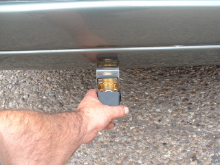 The LPG filler is placed at the bottom of the rear bumper, just about the only position that will conform to regulations but remain easy enough to use without kneeling. A coil is put in the filler pipe to prevent breakage during a rear - end shunt, but even if the pipe where completely severed the multi valve would stop any significant leakage. All that can escape is the gas content of the pipe since the last fill.