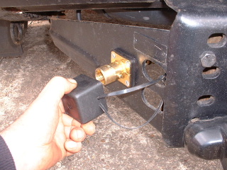 And finally, the LPG filler. This is the 'fixed bayonet' type of filler required by LPGA, the only type that is certifiable under their installation regulations. The position on the towbar blade is ideal, safe from rear impact and easy to reach.